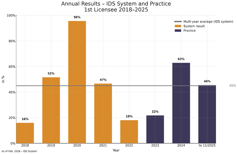 Since its market launch in August 2018, the IDS system has consistently delivered above-average returns – regardless of whether the markets rise or fall.
