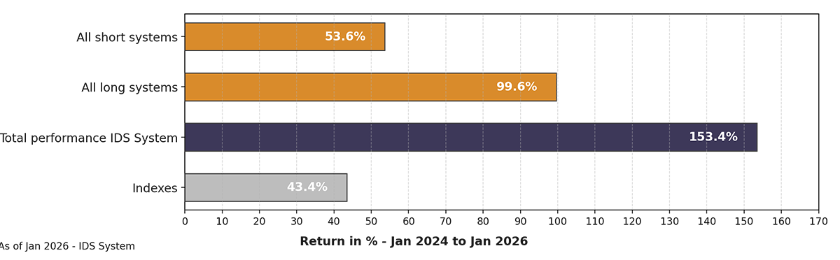The so-called IDS system generates returns both when prices rise and fall – completely independently of market opinions or forecasts.